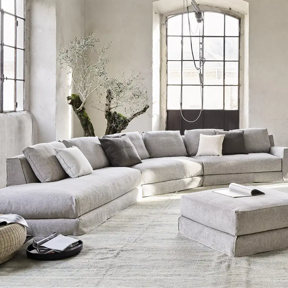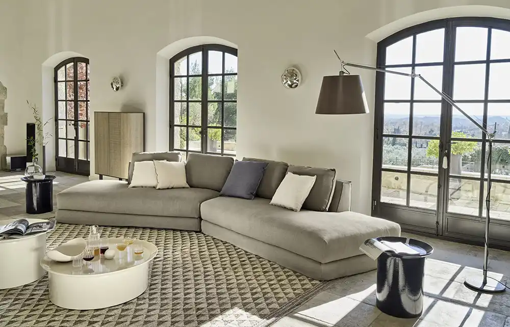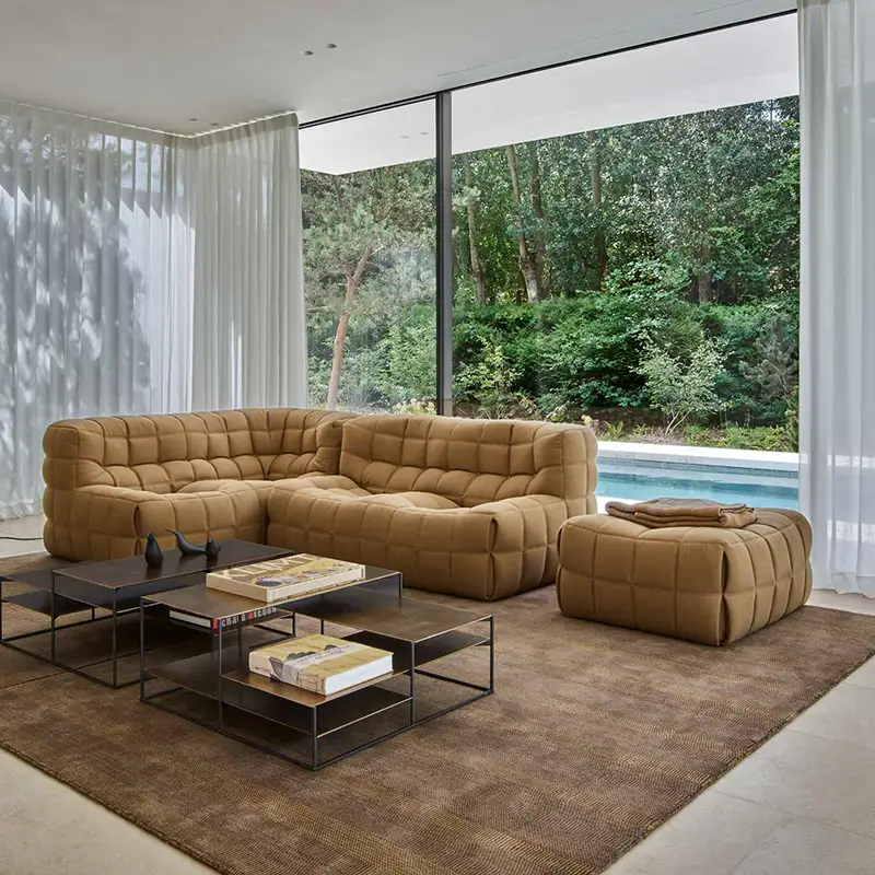 B&B ITALIA repousse les limites techniques du confort depuis 1966. Leurs recherches sur les mousses polyuréthanes et les structures ergonomiques font référence mondiale. Le canapé Charles, avec ses proportions généreuses et son revêtement capitonné, illustre parfaitement cette approche.