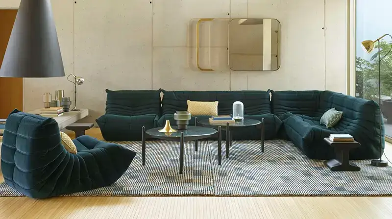 LIGNE ROSET, fabricant français, incarne depuis 1860 l'excellence française du mobilier contemporain. Leurs canapés, comme le mythique Togo dessiné par Michel Ducaroy, ont révolutionné notre rapport à l'assise décontractée.