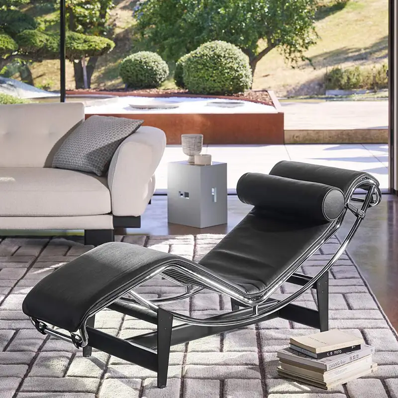 Le trio Le Corbusier, Perriand, Jeanneret a conçu cette pièce comme une sculpture fonctionnelle. L'équilibre de la structure tubulaire chromée permet un réglage infini de l'inclinaison. Dans un salon au Mans, la LC4 ne meuble pas : elle structure l'espace par sa ligne épurée. Son cuir noir patiné devient plus beau avec le temps, développant une texture unique qui raconte votre histoire.
