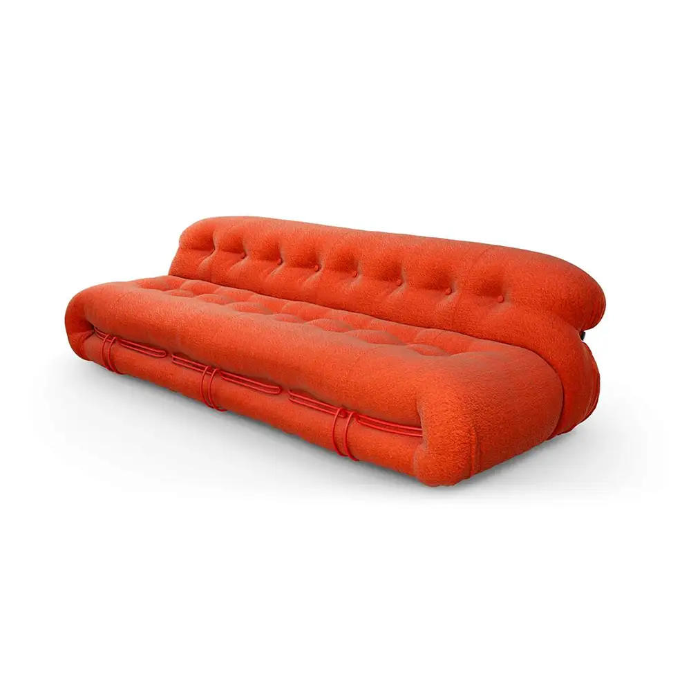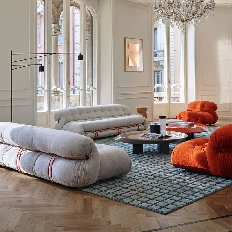 Dans un intérieur sarthois, le Soriana apporte l'esprit années 70 raffiné, loin des clichés. Sa profondeur d'assise généreuse et ses coussins moelleux invitent à l'abandon, tout en maintenant une esthétique sophistiquée. Les architectes le prescrivent régulièrement pour des projets haut de gamme où le confort ne doit jamais compromettre la cohérence visuelle.