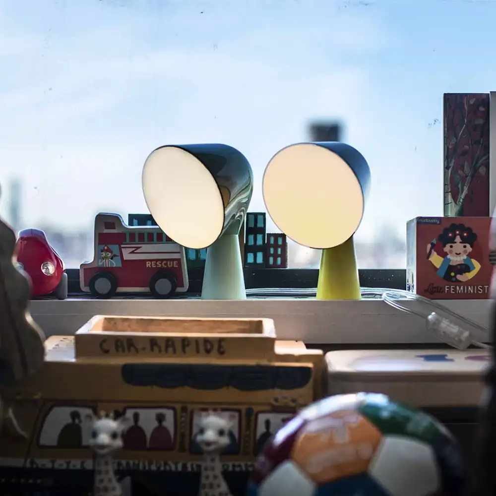 À l'opposé du spectre stylistique, Binic de Ionna Vautrin injecte une dose de fantaisie maîtrisée. Inspirée des manches à air bretonnes, cette lampe en ABS teinté dans la masse joue la carte du ludique sans sacrifier la qualité d'éclairage. Son format compact (hauteur 20 cm) en fait l'alliée idéale des espaces de travail créatifs ou des chambres d'adolescents exigeants.