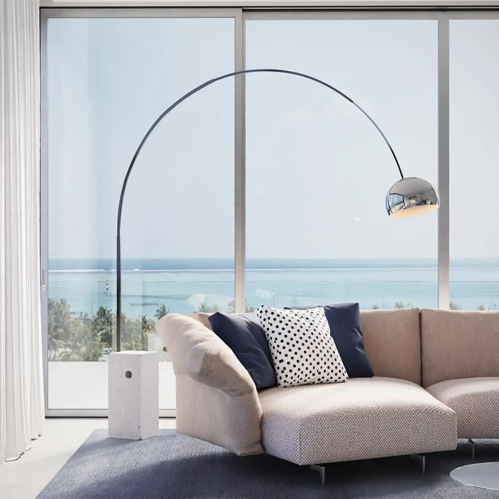 Lampadaire Arc Salon lecture, coin canapé Apporter lumière fonctionnelle sans perçage plafond Flos, Artemide