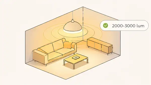 une pièce de 20 m² nécessite environ 2000 à 3000 lumens pour un éclairage général confortable.