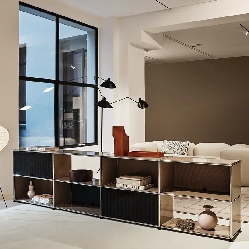 Vous scrutez les angles d'un buffet depuis dix minutes. Le métal chromé accroche la lumière avec une netteté chirurgicale. Les panneaux laqués semblent avoir été peints hier, pourtant ce meuble a vingt-cinq ans. Voilà la promesse du système USM Haller : une architecture modulaire qui traverse le temps sans perdre une once de sa superbe. Mais comment transformer cette grammaire visuelle suisse en un projet cohérent pour votre bureau manceau ou votre salon contemporain ? Choisir un buffet Ikea, c'est simple. Concevoir un système évolutif qui accompagnera vos mutations professionnelles et personnelles pendant trois décennies nécessite une autre approche. Chez B comme Design, nous ne distribuons pas des catalogues : nous maîtrisons l'ingénierie d'un langage formel qui fait entrer le MoMA dans votre intérieur.