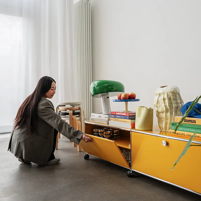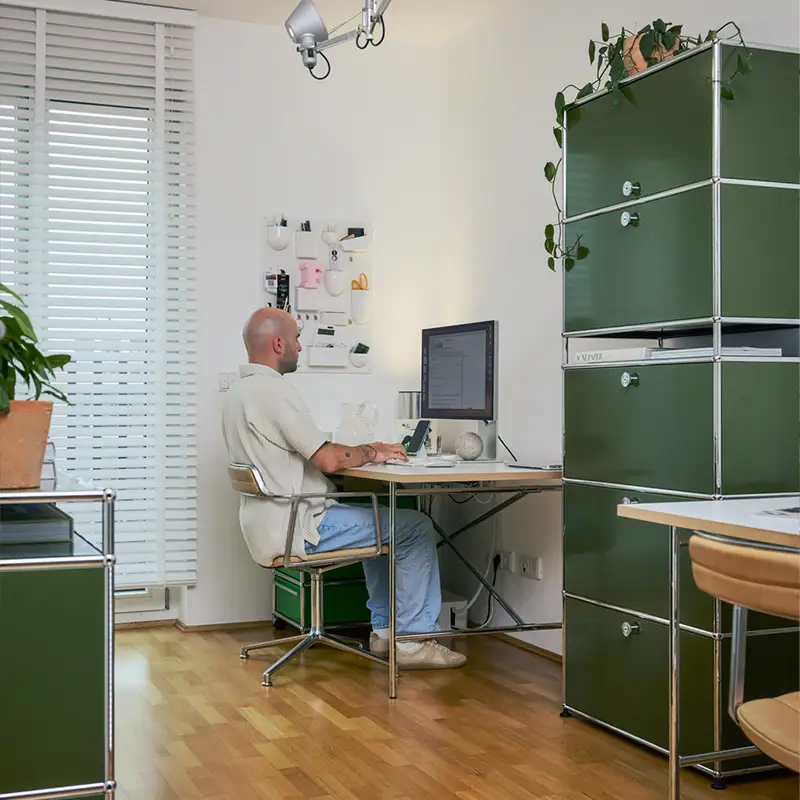 Venez manipuler les mécanismes silencieux d'une porte USM et sentir la densité du métal laqué. Prenez rendez-vous avec nos experts au showroom B comme Design au Mans pour transformer un système industriel suisse en patrimoine mobilier personnel. Parce qu'un meuble USM n'est jamais terminé : il évolue avec vous.