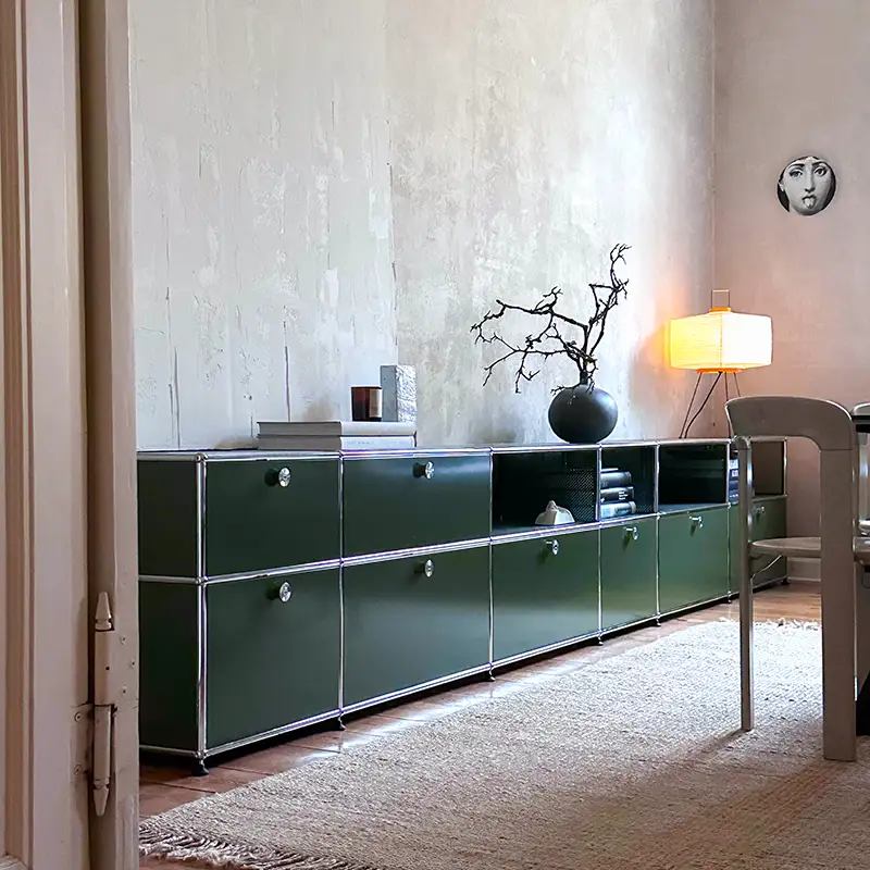 Conseil d'expert : Les configurations USM les plus réussies intègrent des hauteurs décalées. Un meuble bas (350 mm) accolé à une colonne haute (1538 mm) crée un rythme visuel bien plus intéressant qu'un alignement monotone.